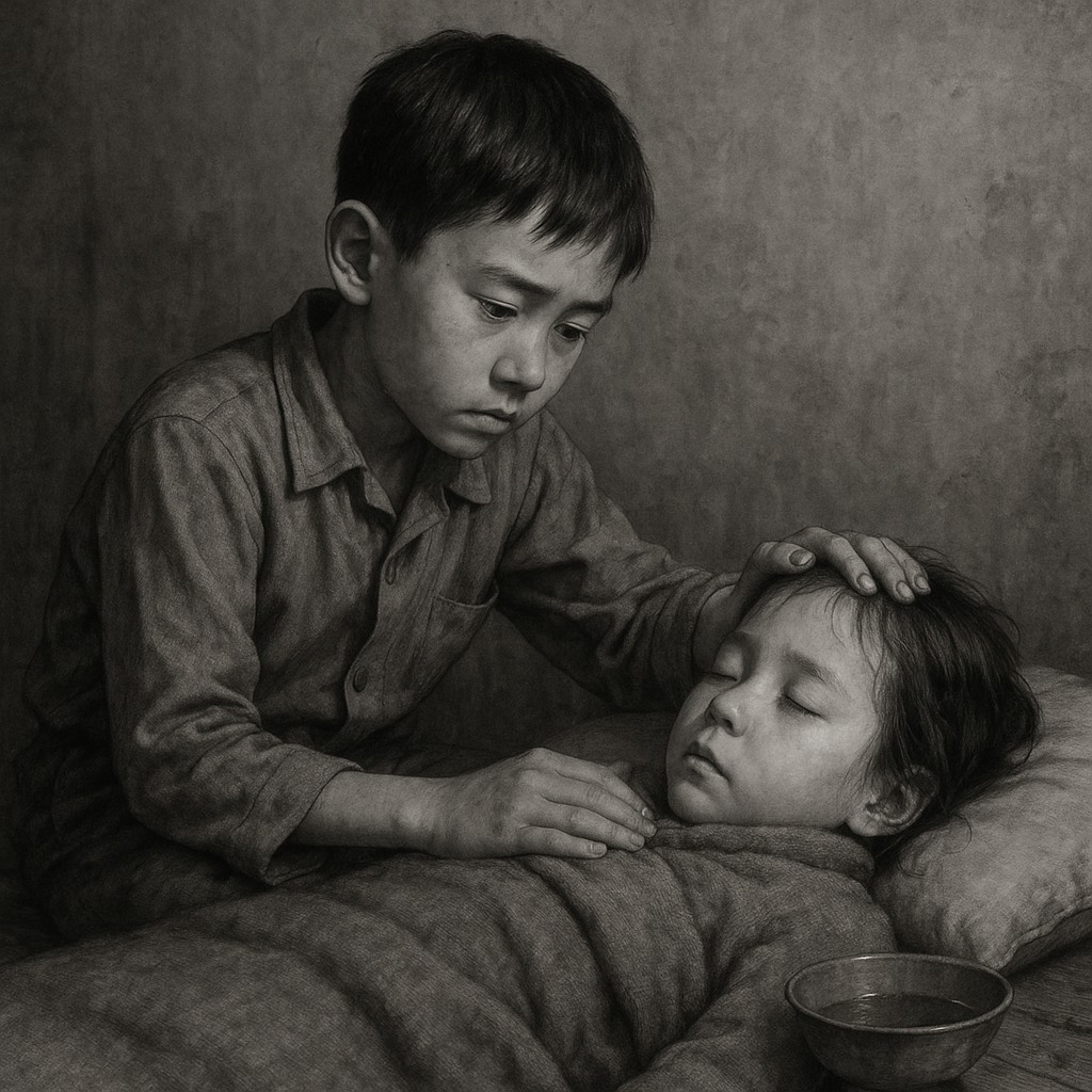 少年は掌を妹の額に置いた。熱は明確だった。明確なものは、反論を許さない。少年は黙って座った。黙るしかない時間がある。そこに正義は用がない。