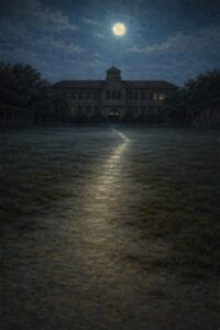 校庭へ向かう影の道を歩いていると、
