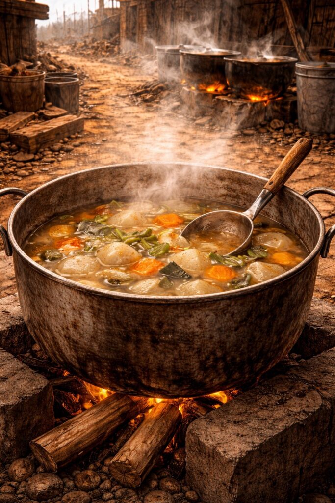 朝の炊き出しで、鍋の前に立つと、湯気が顔に当たった。