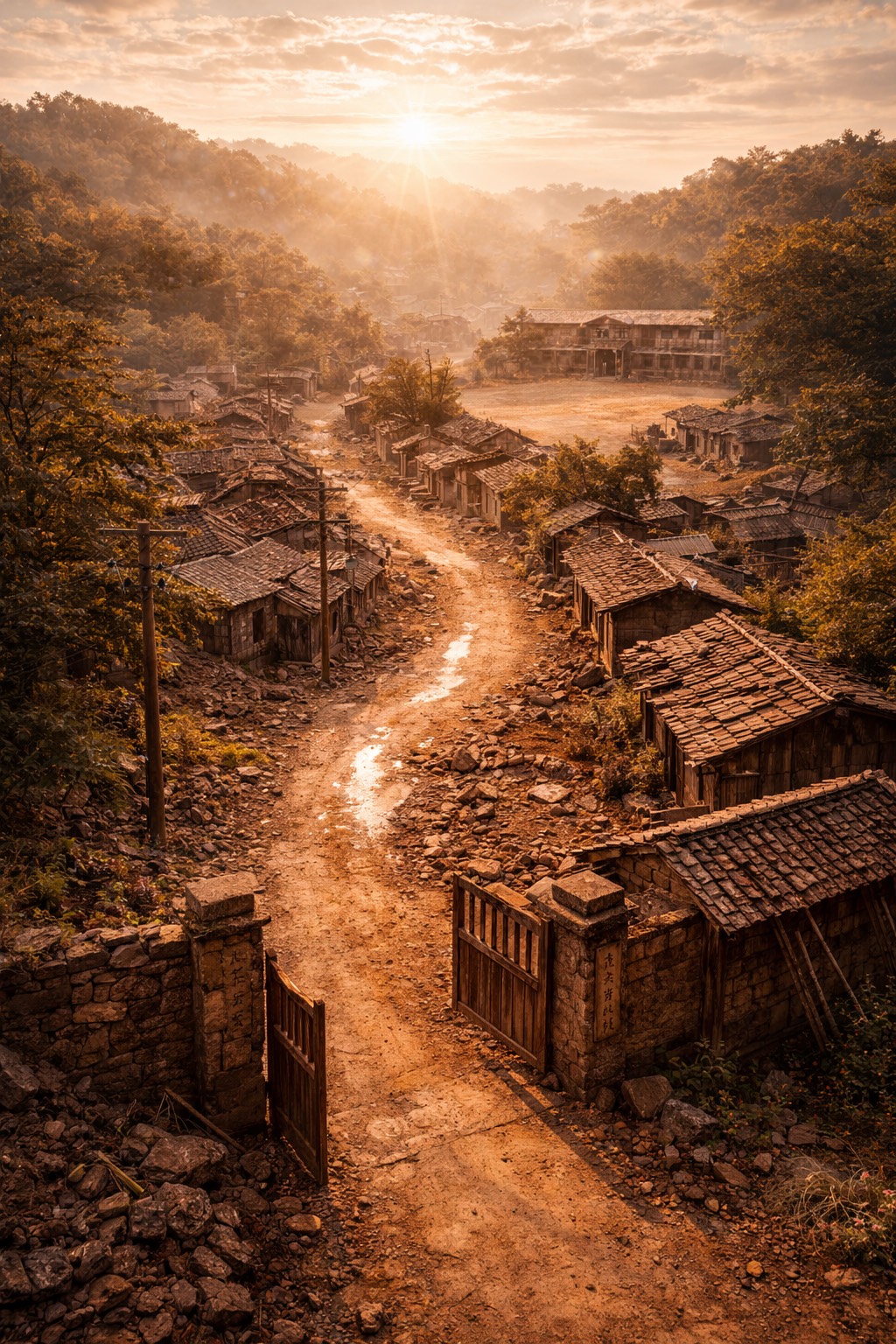 瓦礫の縁で影が歪む。