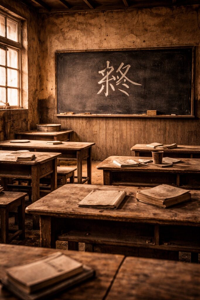 - ■黒板の字が「終」で止まり、「了」は書かれない