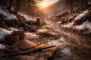 伊織は川沿いの茶屋に入り、熱い茶を頼んだ。湯気が立ち、指先に血が戻る。店の隅では、舟運の仲仕らしい男たちが、魚の骨をしゃぶりながら言い争っている。