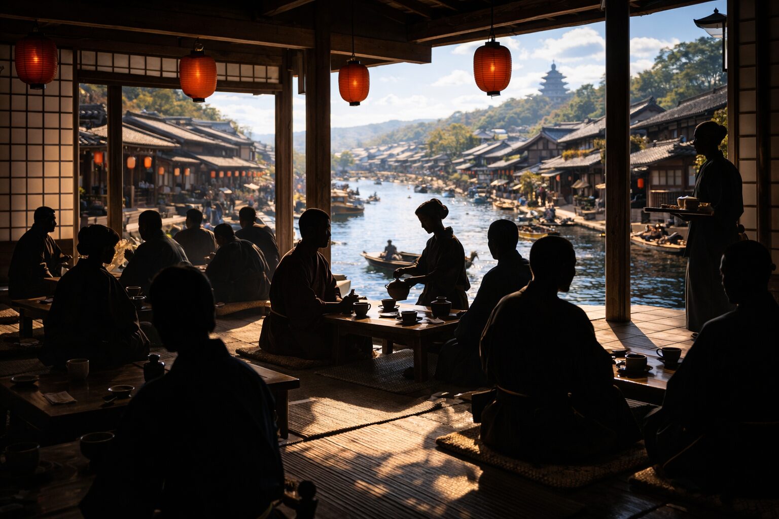 城の西口に近い茶屋は、昼と夜で客の質が変わる。