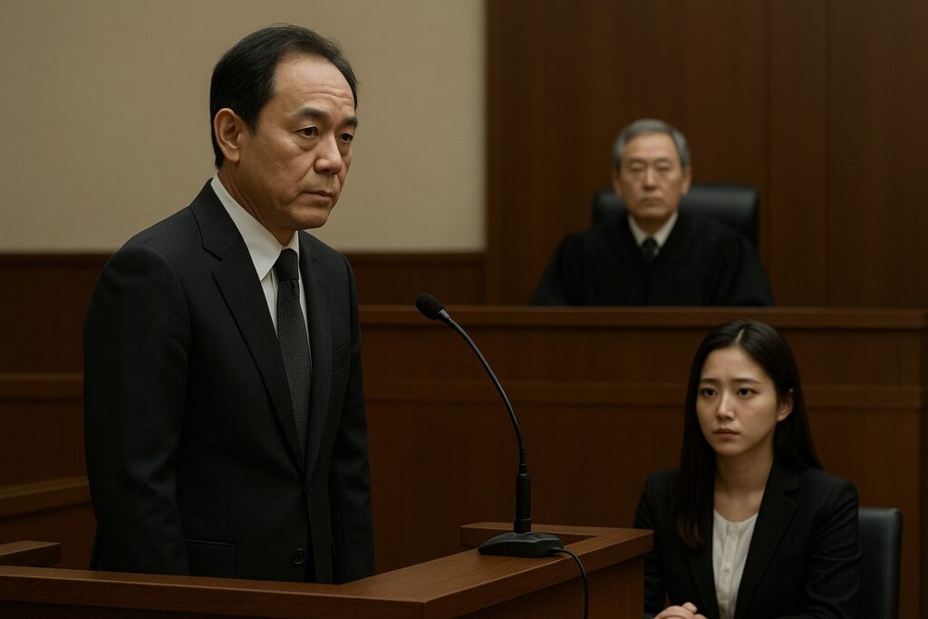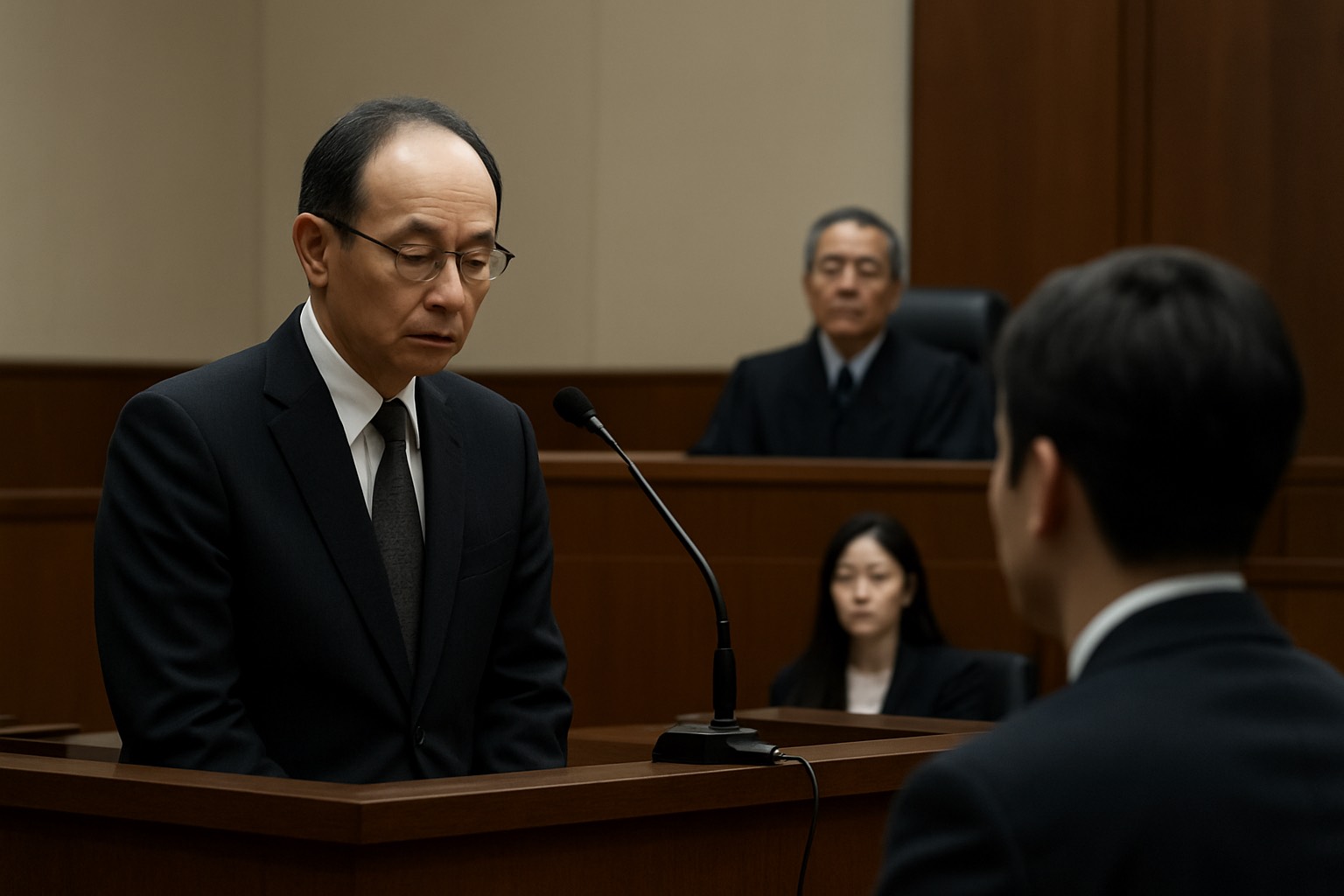 大阪地方裁判所の法廷は、梅雨の湿気を含んだ空気で重く淀んでいた。天井に並ぶ蛍光灯は白々と光り、傍聴席を満たす人々の顔を青白く照らし出す。そのなかで、被告席に座る男――山崎は、硬直した表情を崩さずに前を見据えていた。